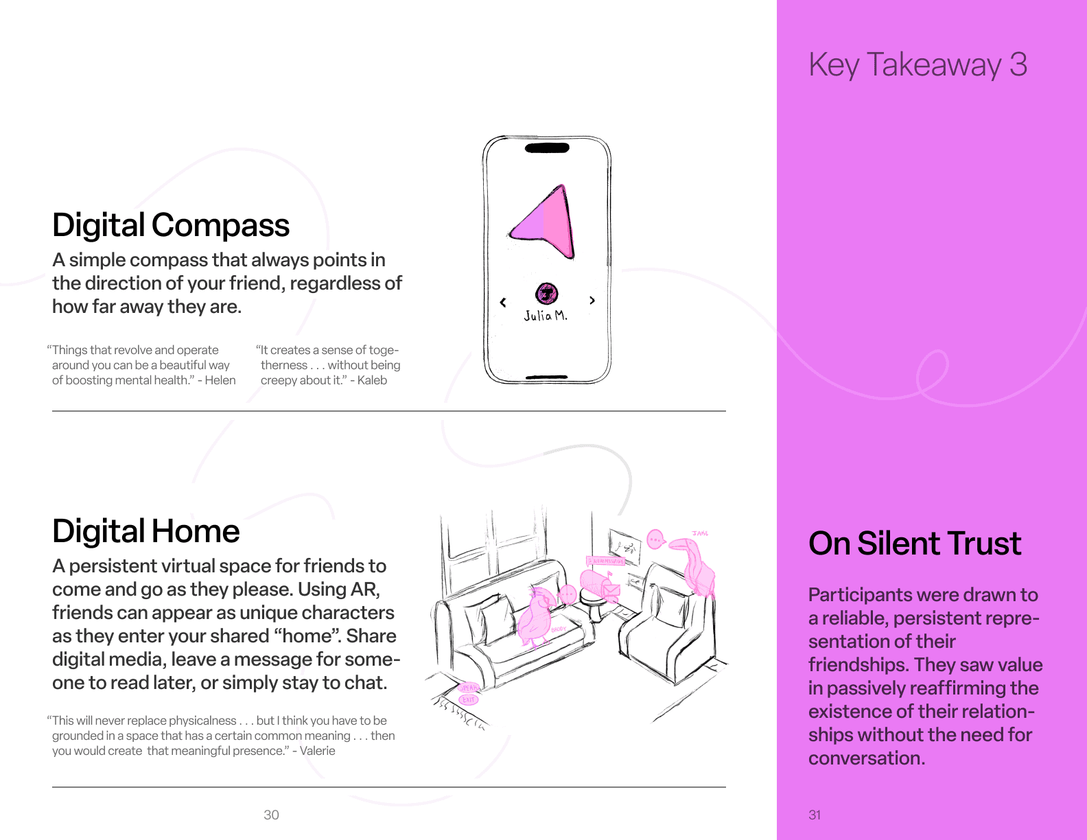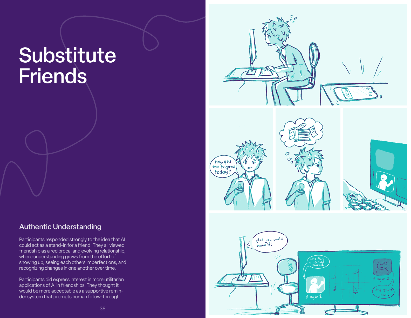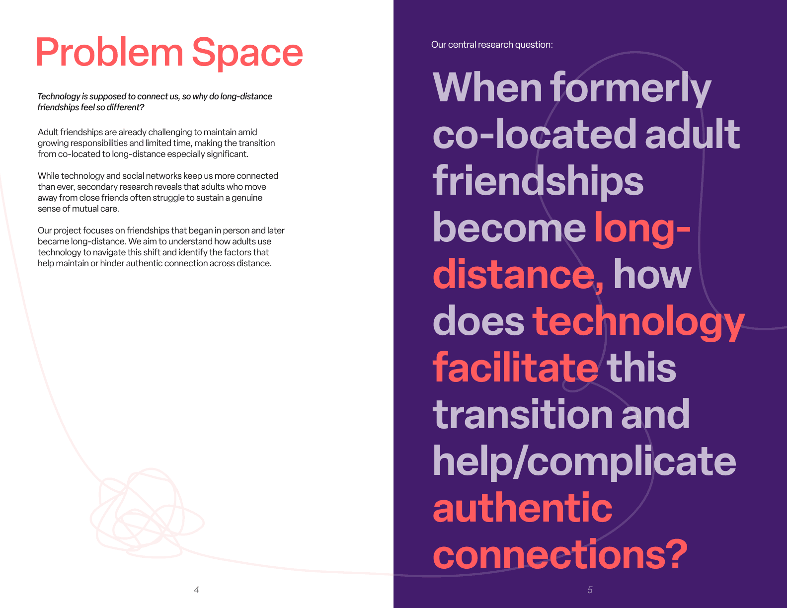 In the second half of the interview, we explored friendship values, moments of connection and tension, and how authenticity shows up across distance. Participants also completed a short talk-aloud exercise using both familiar and less familiar communication tools to reveal real-time behaviors, instincts, and emotional responses.