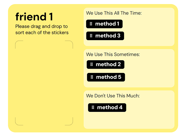 We had participants match their personal inventory to their circle of trust, allowing us to see whether participants use different communication methods depending on who they are talking to and how close that friend is.