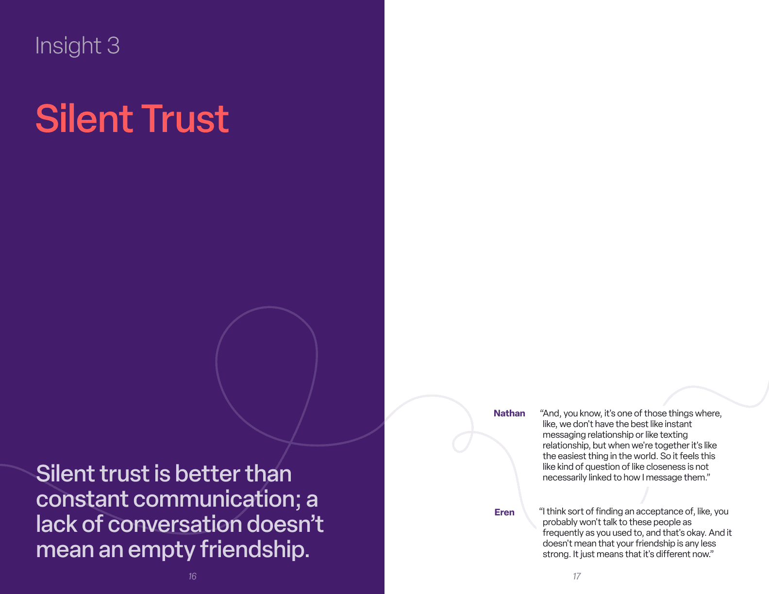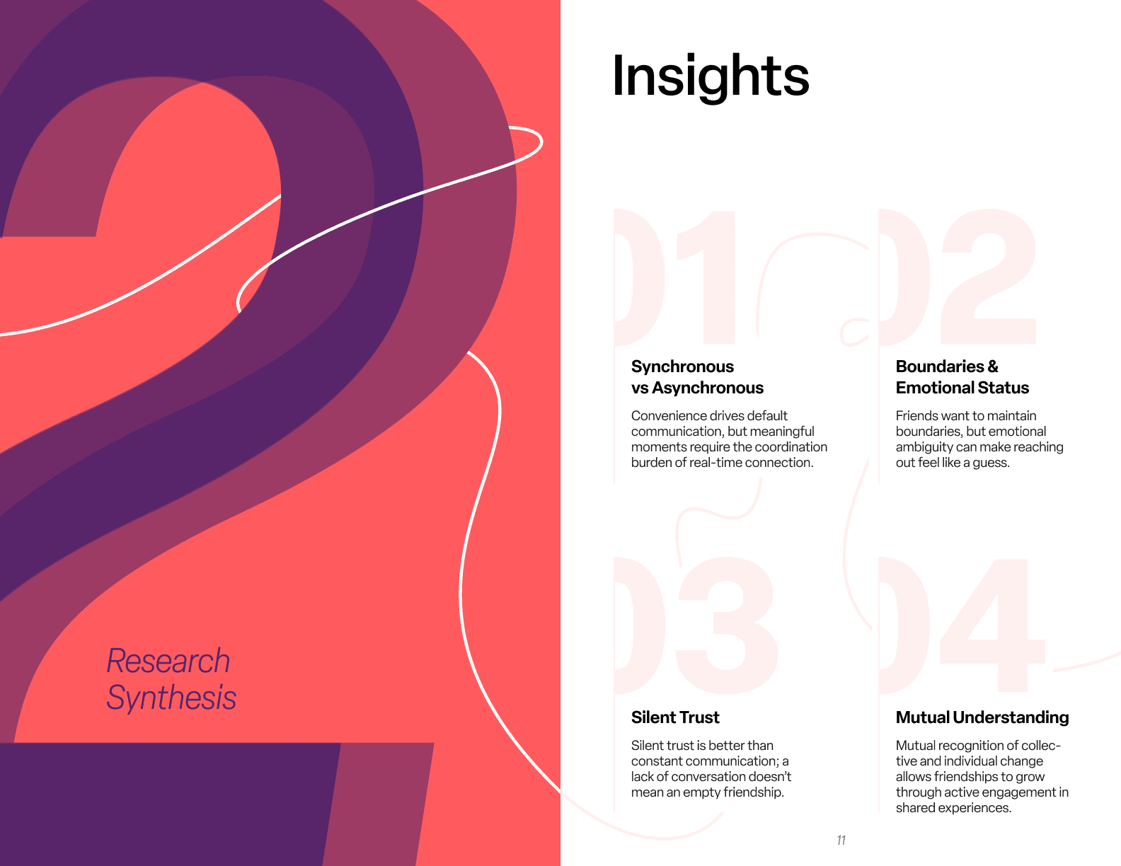 Through our synthesis process, we transformed hundreds of quotes, stories, and observations into four core insights that describe what long-distance friendship actually feels like for adults using digital communication tools.