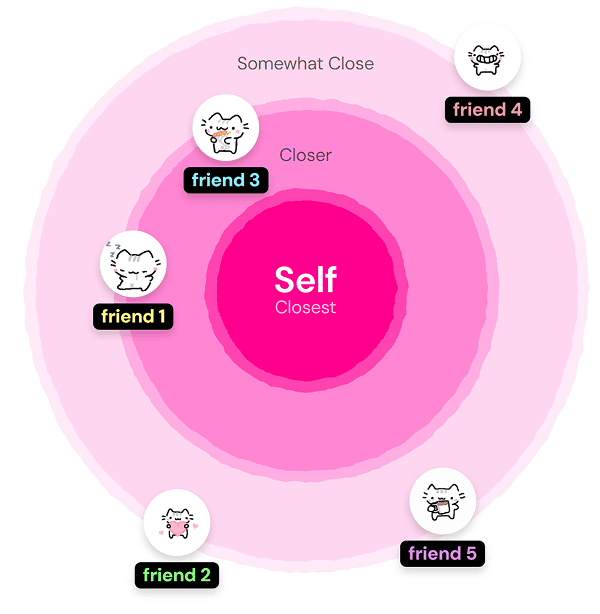 Participants were asked to place their long-distance friends on a circle of trust to rank them by closeness. This helped us understand how they perceived the strength of their friendships and, through interview probing. why certain relationships felt especially strong.
